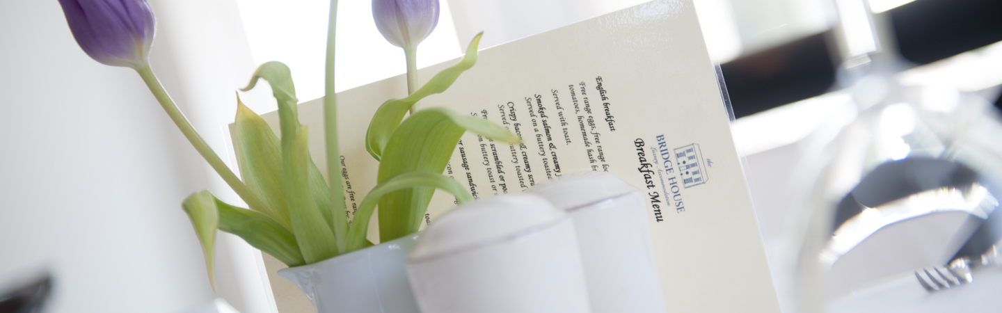 The Bridge House has a well stocked Honesty Bar where you can select a drink from a range of wines, spirits and beers and enjoy a drink in the guests lounge or garden. All you need to do is make a note on the bar ledger and we will add it to your bill. We also offer a limited bar menu for those who simply want to absorb the peaceful view or put their feet up in front of the log fire.