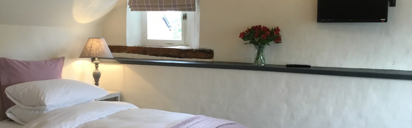 This adaptable room has a super-king bed or two twin beds with Hypnos mattresses giving complete comfort. Vaulted ceilings, en-suite bath and shower with views across the rooftops to Wilton Castle. There are coffee and tea making facilities, complimentary toiletries, free wifi and widescreen television